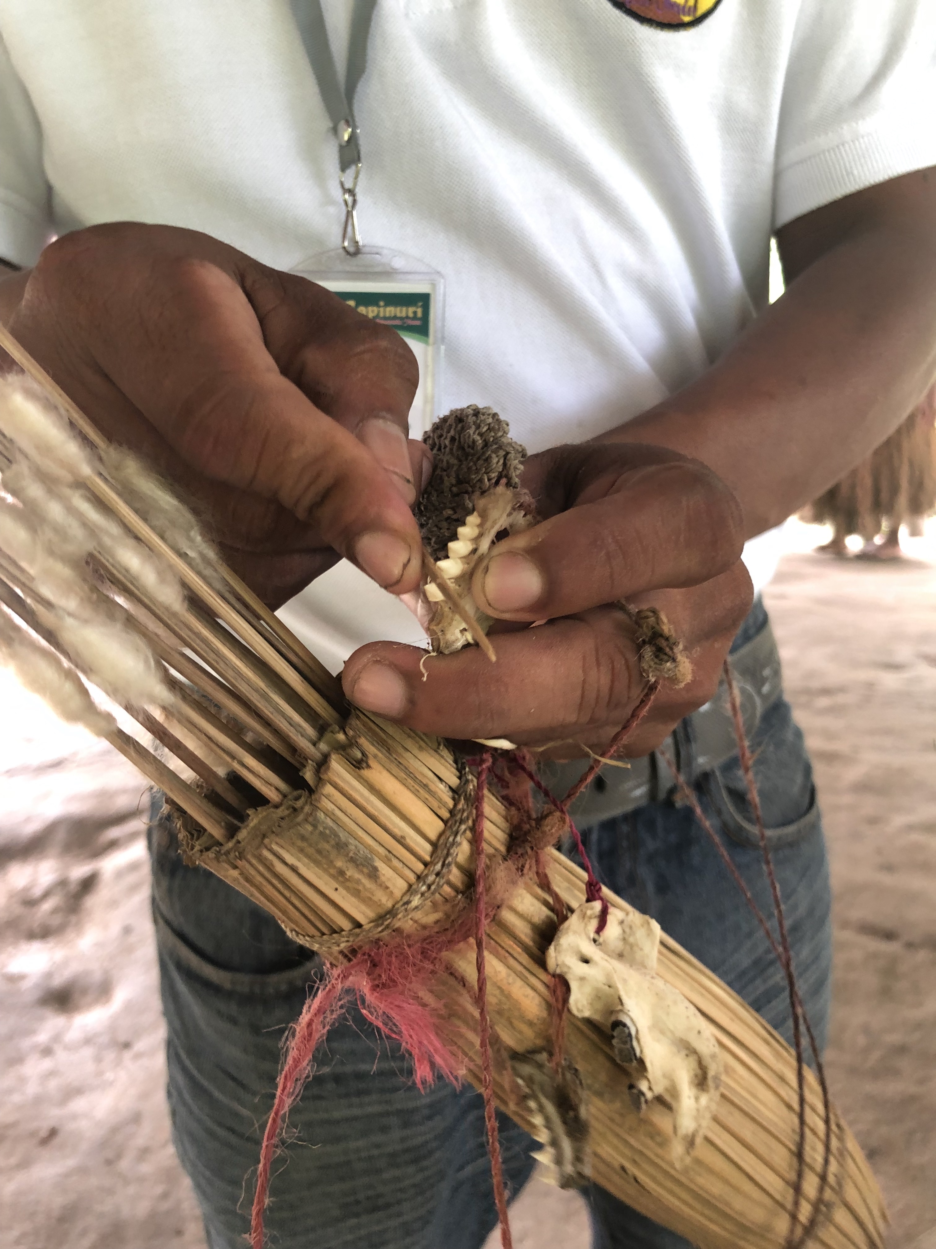 The indigenous people still use their traditional way to hunt animals – Blowgun. A blowgun is a simple ranged weapon consisting of a long narrow tube and light projectiles such as darts. The indigenous people use piranha’s teeth to sharpen the dart and dip it with poison from snakes or rainforest frogs to make it a lethal weapon for animals.