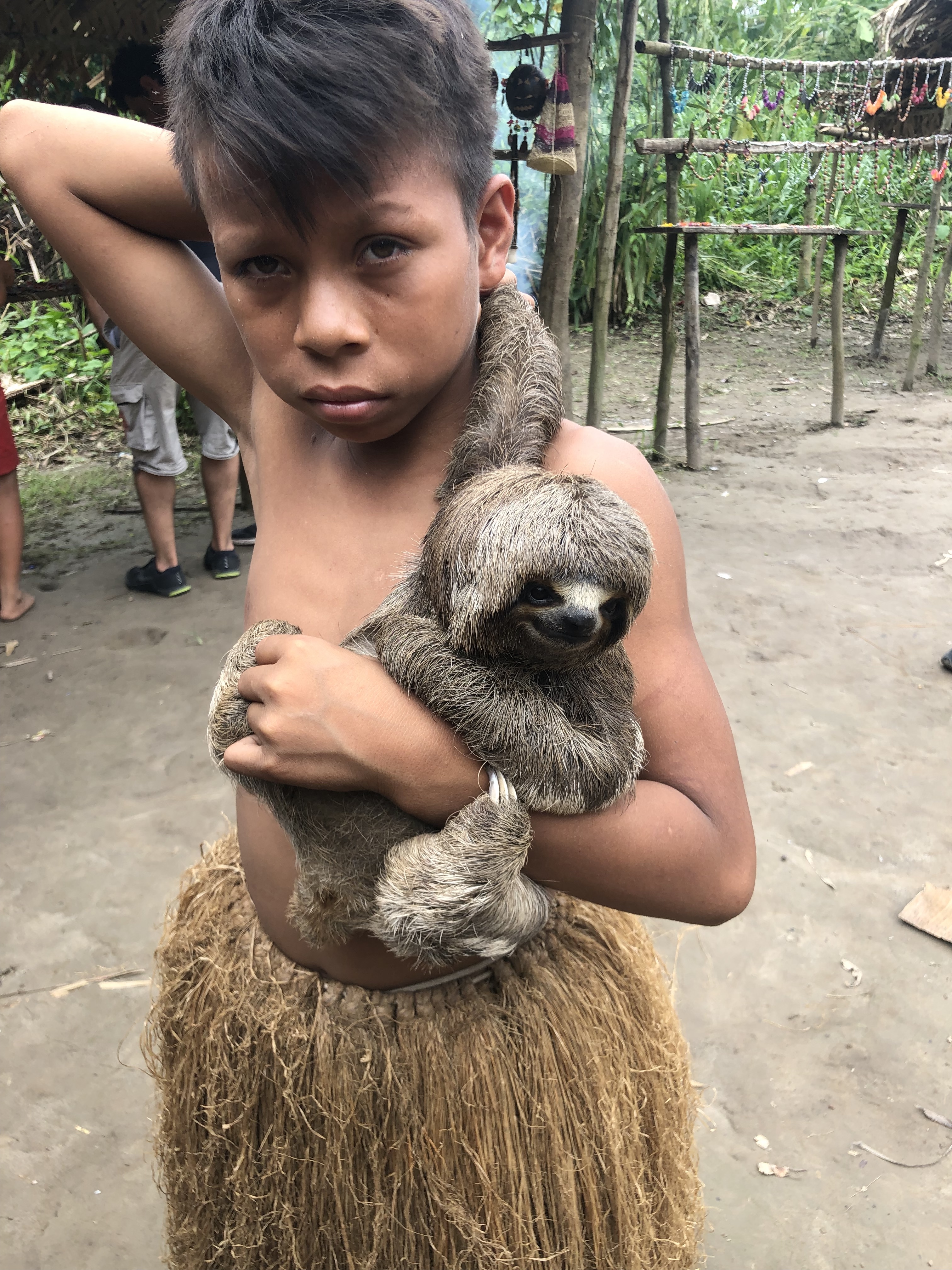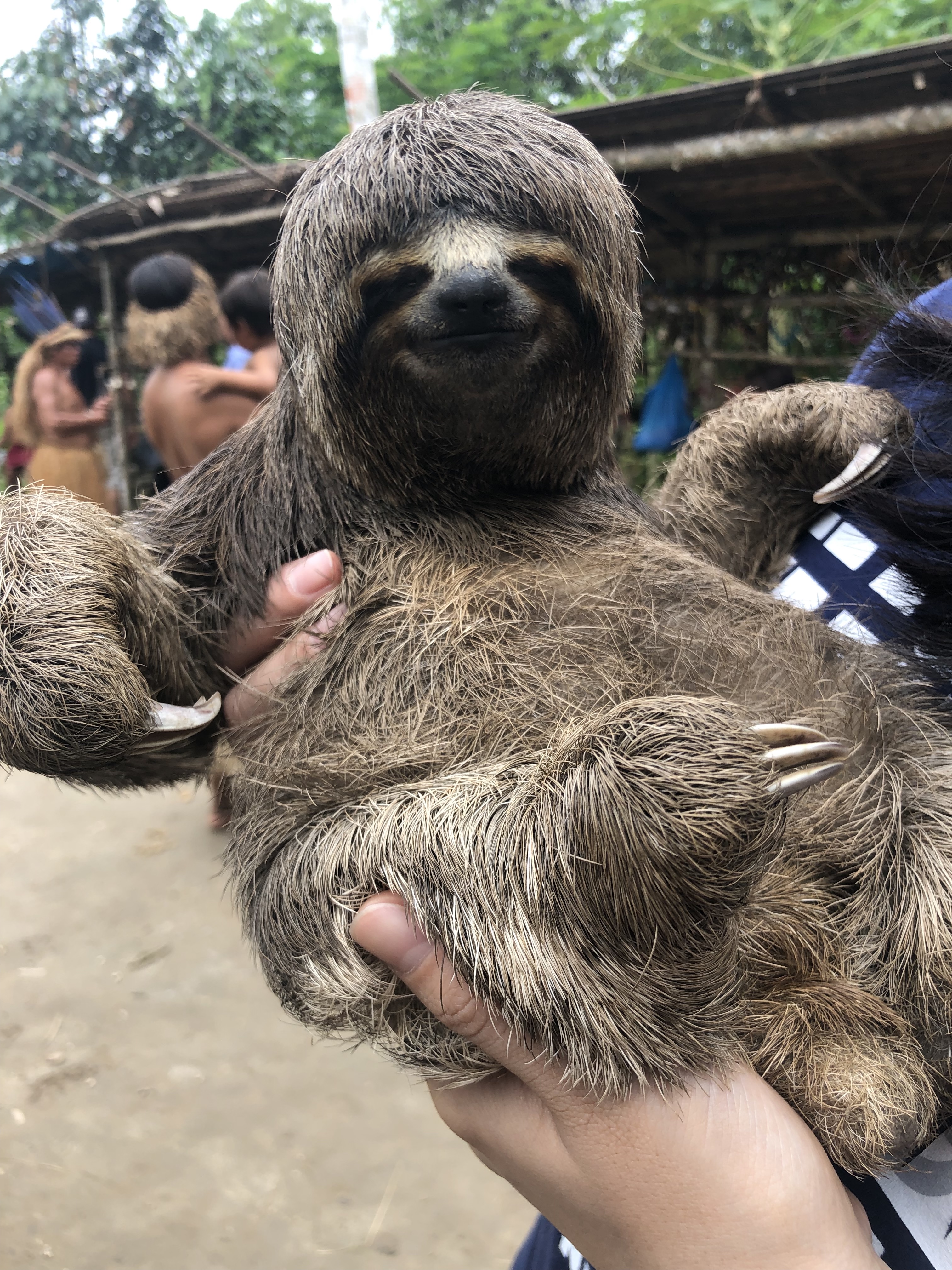 Sloths are arboreal mammals noted for its slowness of movement. They spend most of their lives hanging upside down in the trees of the tropical rainforests of South America. The indigenous people do not eat sloth. Instead, they keep them as pets.
